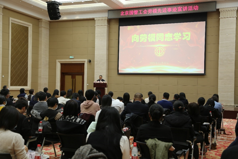 11月22日小雪时节,本部五楼多功能厅朴素简洁、气氛热烈。北京国管工会在这里举办劳模事迹宣讲活动,所属企业82名职工代表参加。