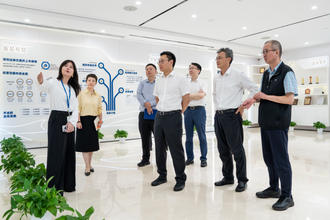 潘金峰参观了第一创业证券企业文化展厅,详细了解了公司发展历程、经营业绩、战略规划、社会责任、党建与文化等方面情况。潘金峰对第一创业证券取得的经营成绩给予肯定,并指出,要积极拥抱新科技,以人工智能赋能业务创新,不断提升差异化竞争能力。